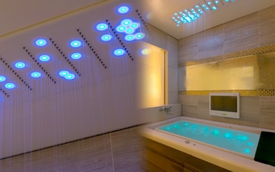 浴室にはホタルのように光る照明の演出で、ムードもぐっと盛り上がります。